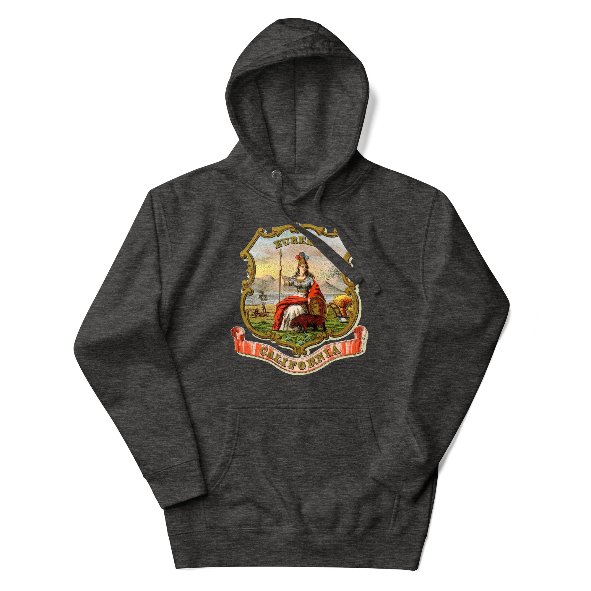 Features the California state seal in a beautiful vintage recreation from the 19th Century. Who knew that the softest hoodie you'll ever own comes with such a cool design. You won't regret buying this classic streetwear piece of apparel with a convenient pouch pocket and warm hood for chilly evenings.