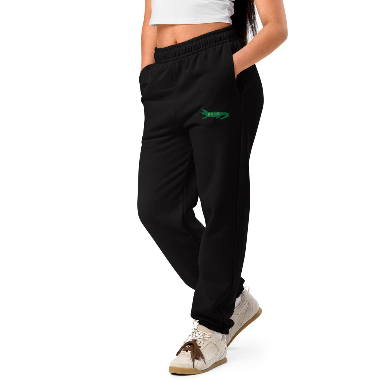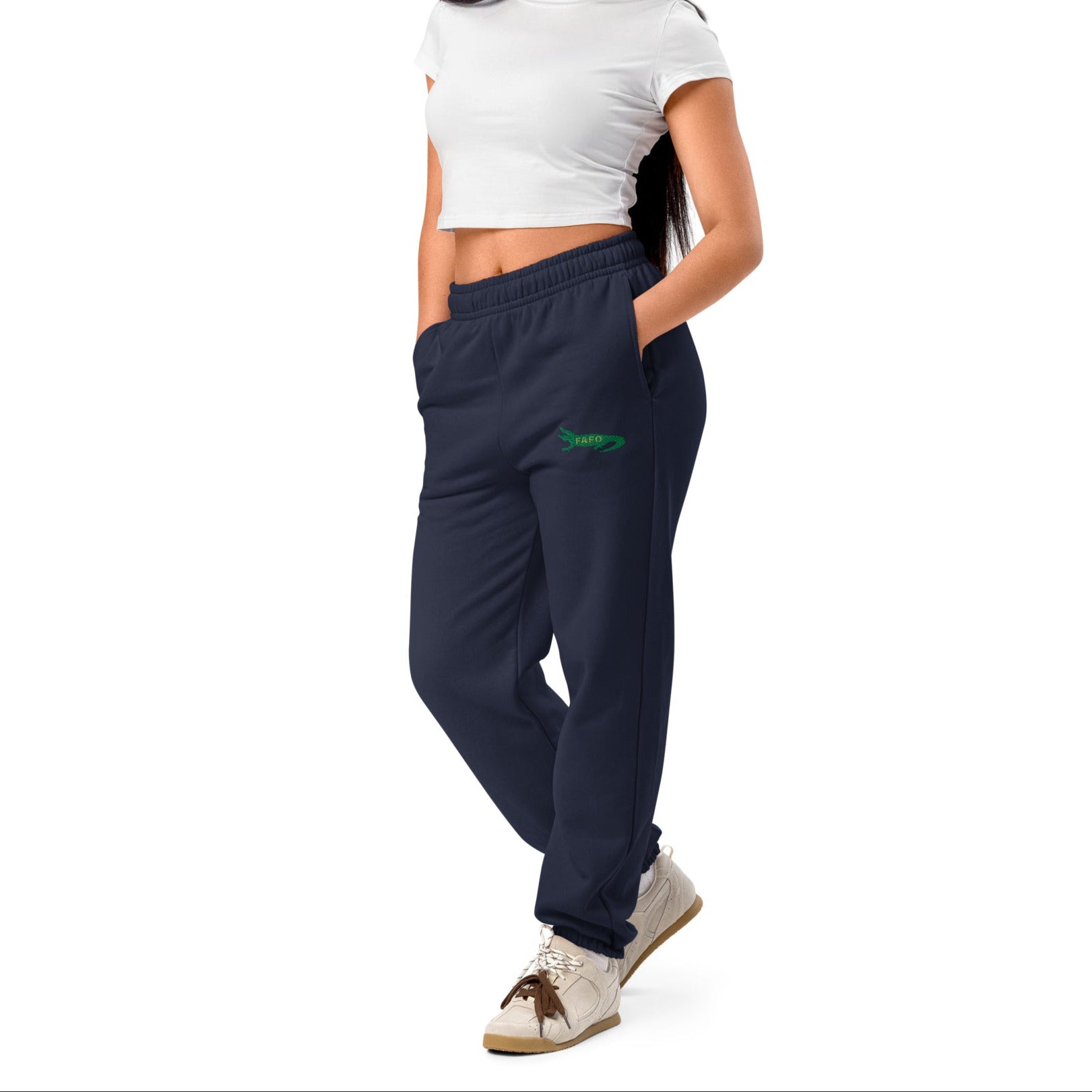 Premium logo-topped sweatpants from Liberty Maniacs. Classic style with a F Around and Find Out gator motif at the leg. Soft cotton blend heavy 10 oz fleece. Relaxed fit. Interior has super soft brushed fleece. Deep side pockets that can hold larger phones, elastic cuffs, interior drawcord.