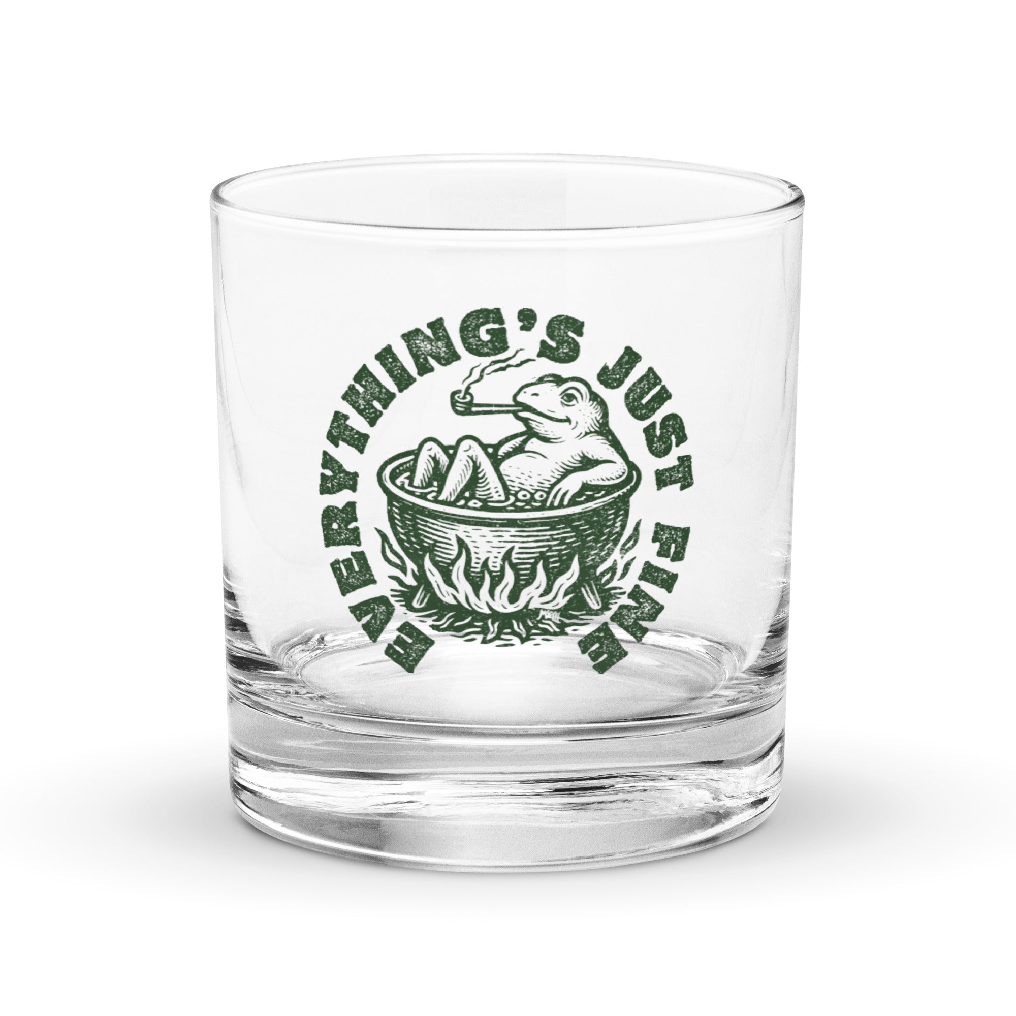 Category: animal, conditioning, conspiracy, conspiracy humor, denial, fire, frog, frying, funny, gift, glass, humor, illustration, liberty maniacs, pipe, politics, retro, rocks glass, satire, slow decline, smoking, toad, whiskey