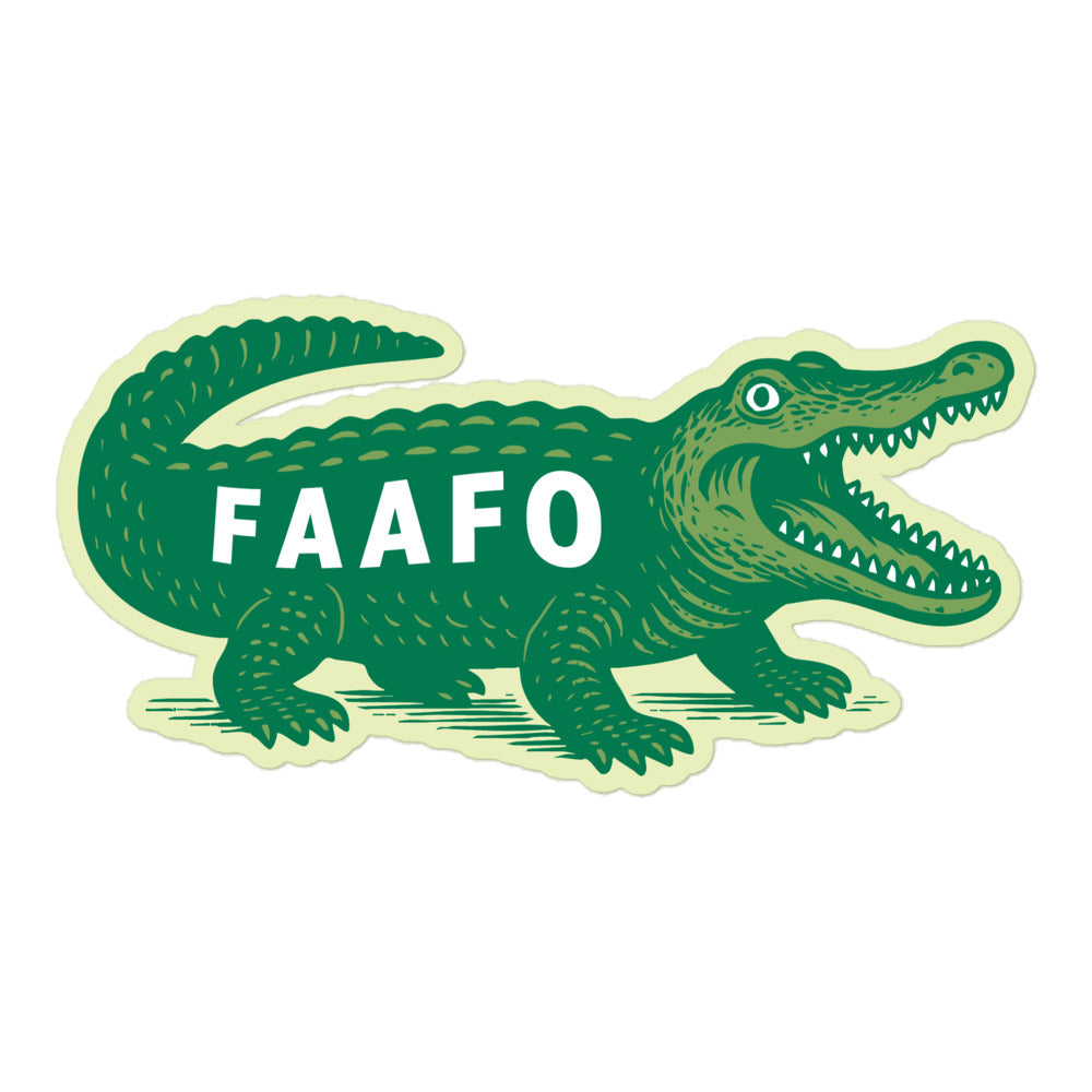 Category: alligator, come and get it, don't tread on me, f around, FAAFO, find out, funny, humor, libertarian, molon labe, sticker