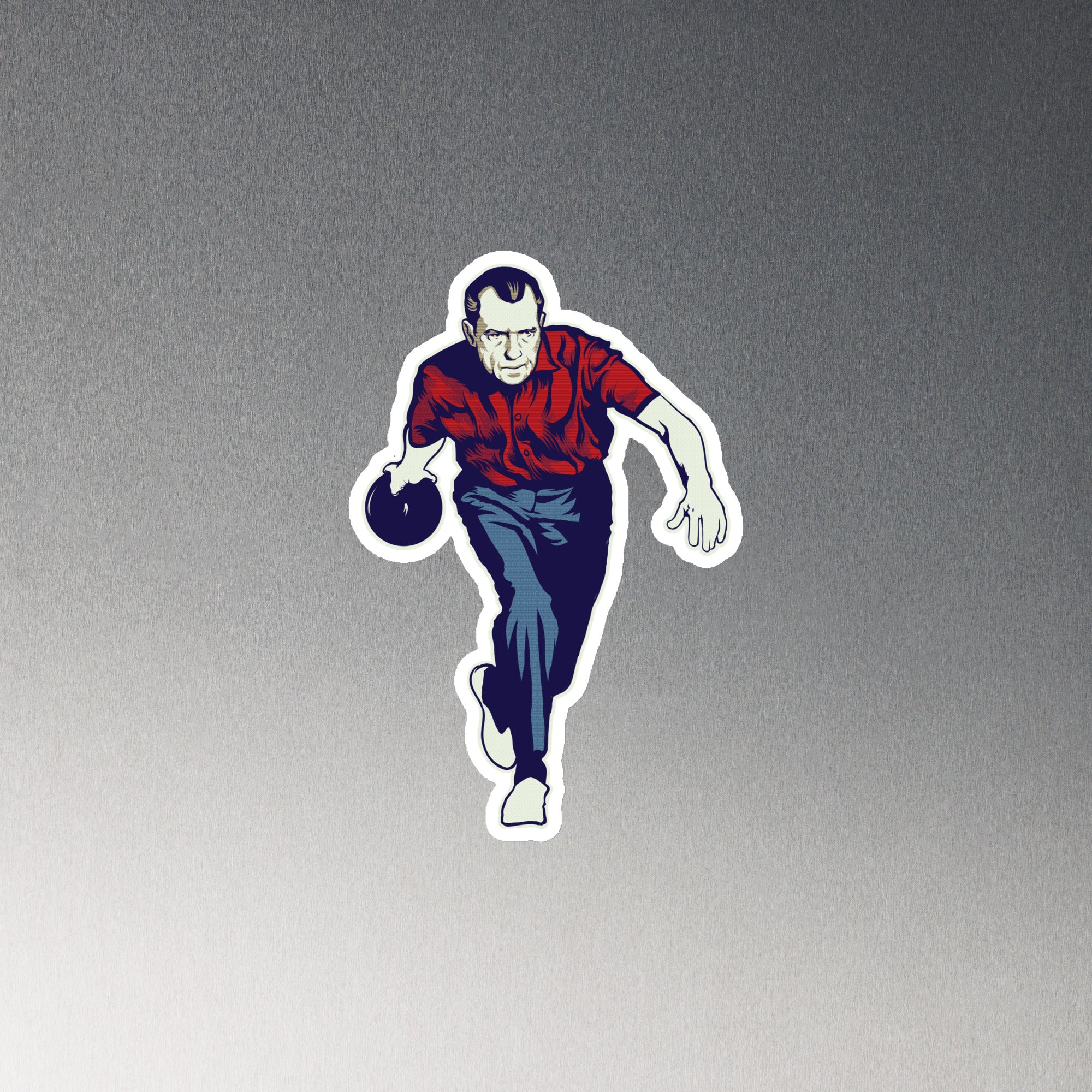 Category: bowling, liberty maniacs, magnet, Nixon, refrigerator magnet