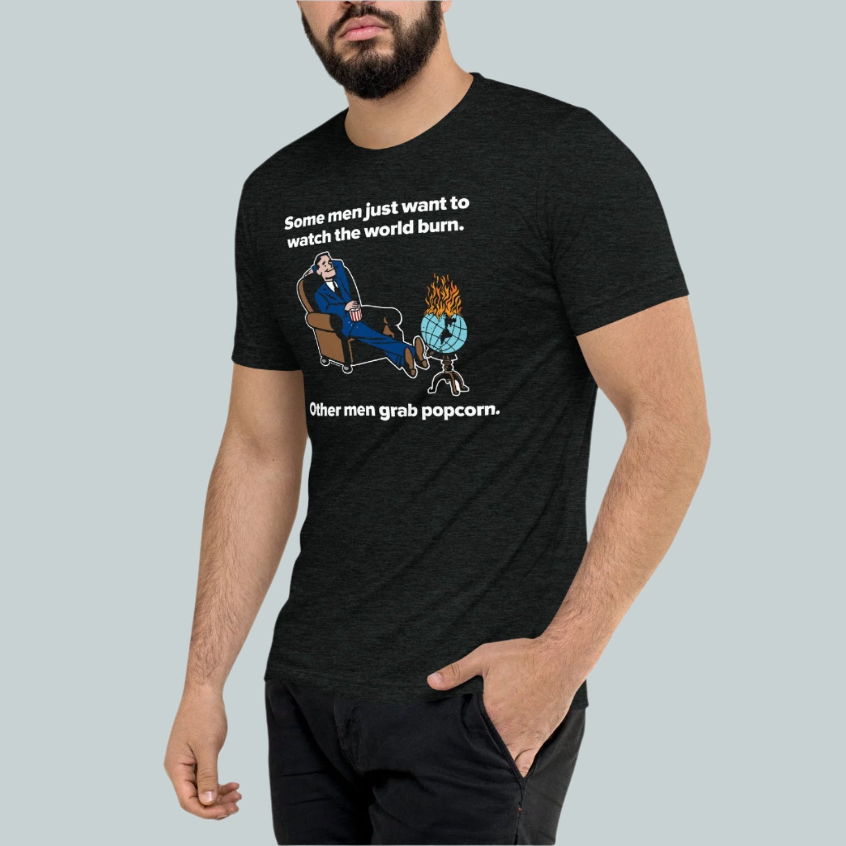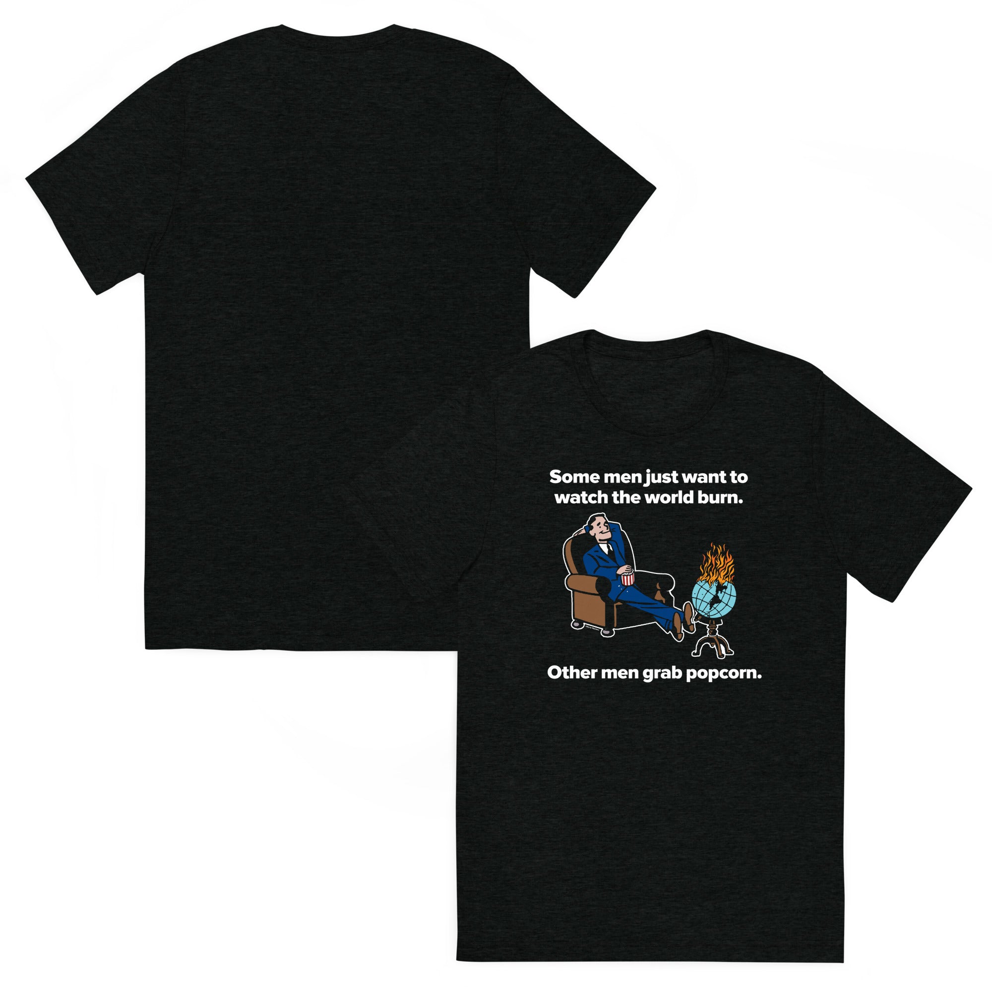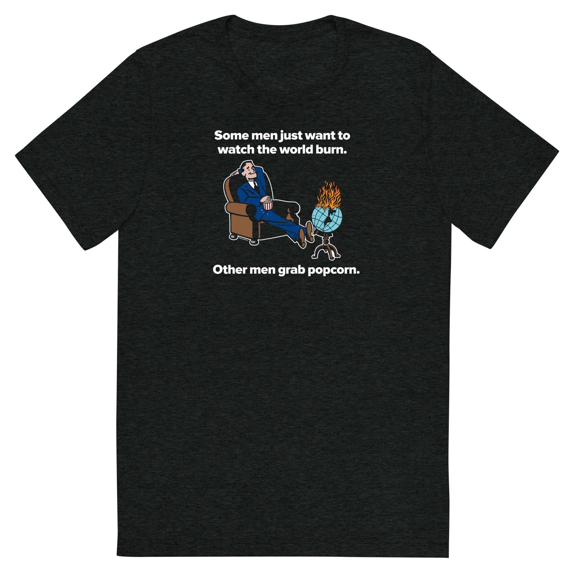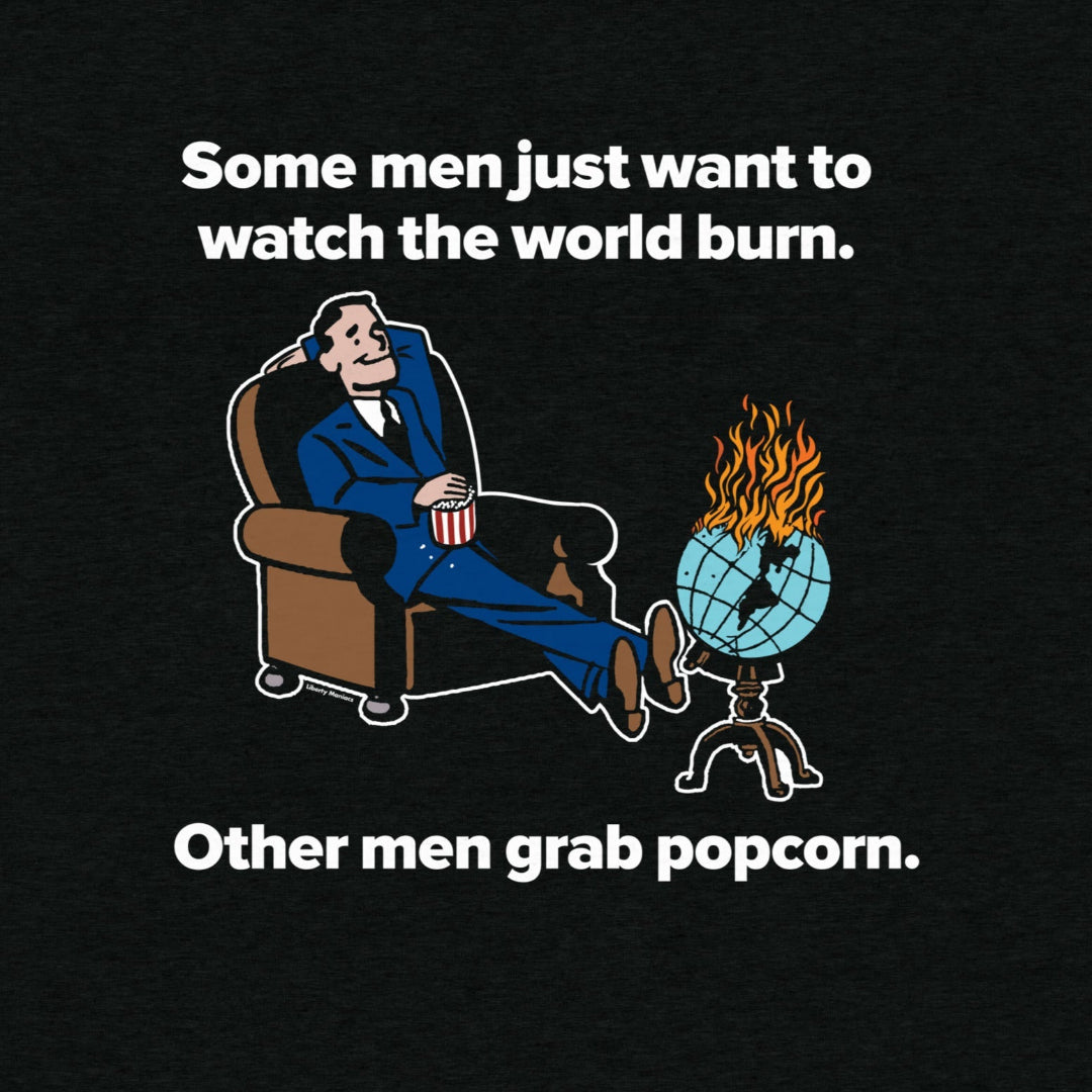 Category: alfred, batman, funny, humor, liberty maniacs, parody, politics, popcorn, retro, short sleeve, some men, t-shirt, tri-blend, tshirt, watch the world burn, world burn
