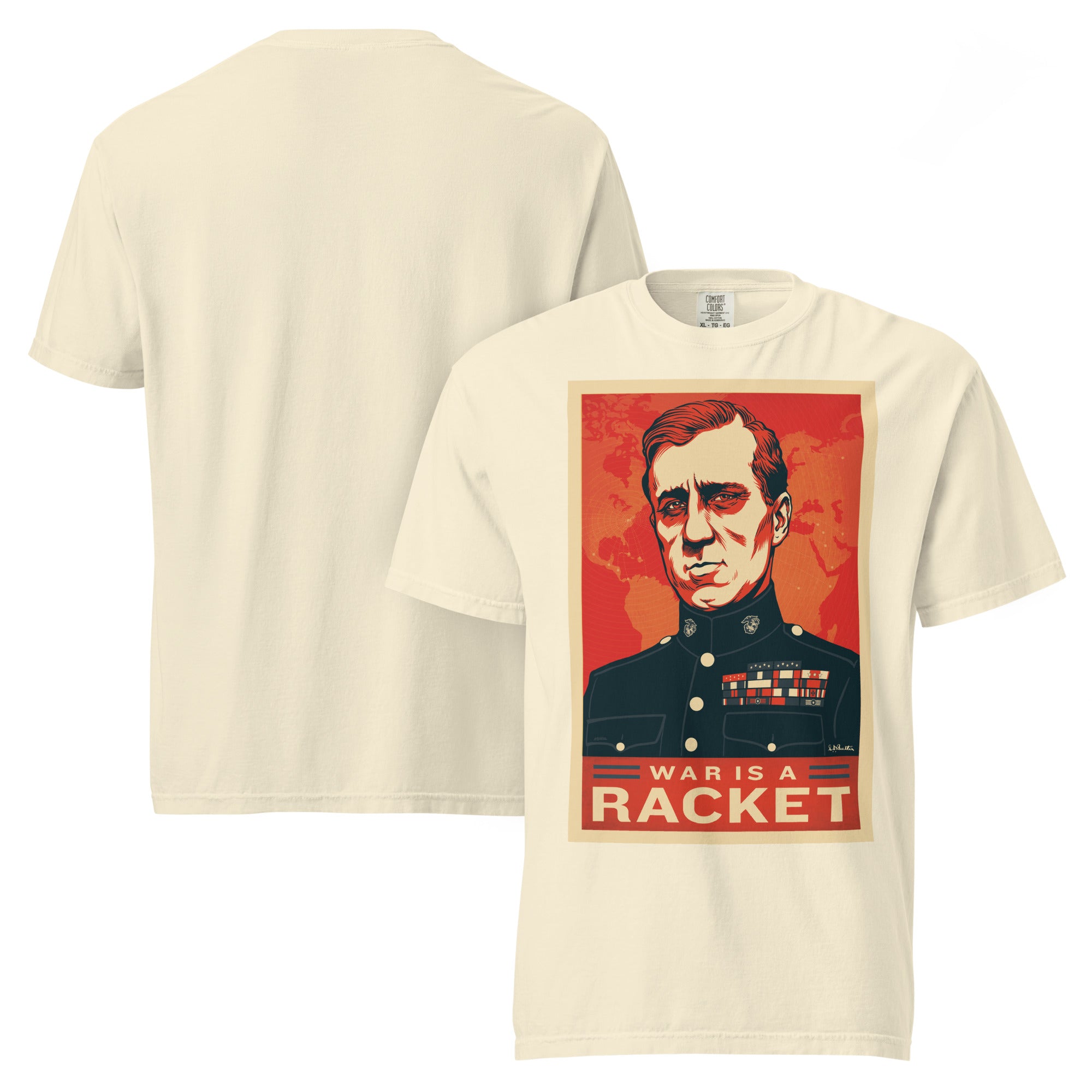 Category: anti war, anti-interventionist, antiwar, classic quote, freedom of speech, garment dyded, heavy, heavyweight, Liberty Maniacs, Major General Butler, peace, propaganda art, Smedley Butler, t-shirt, truth sticker, USMC, veteran quote, War Is a Racket, war profiteering