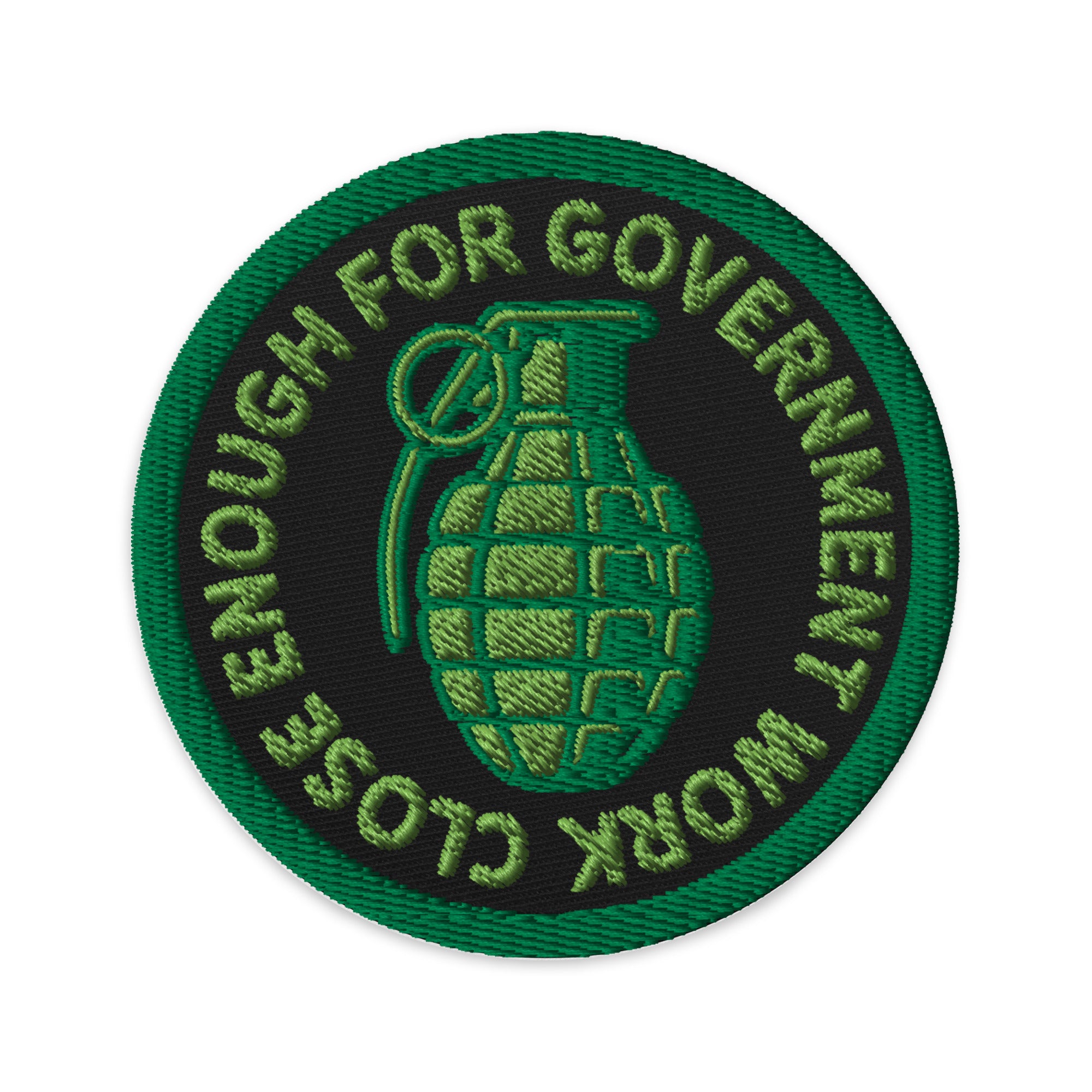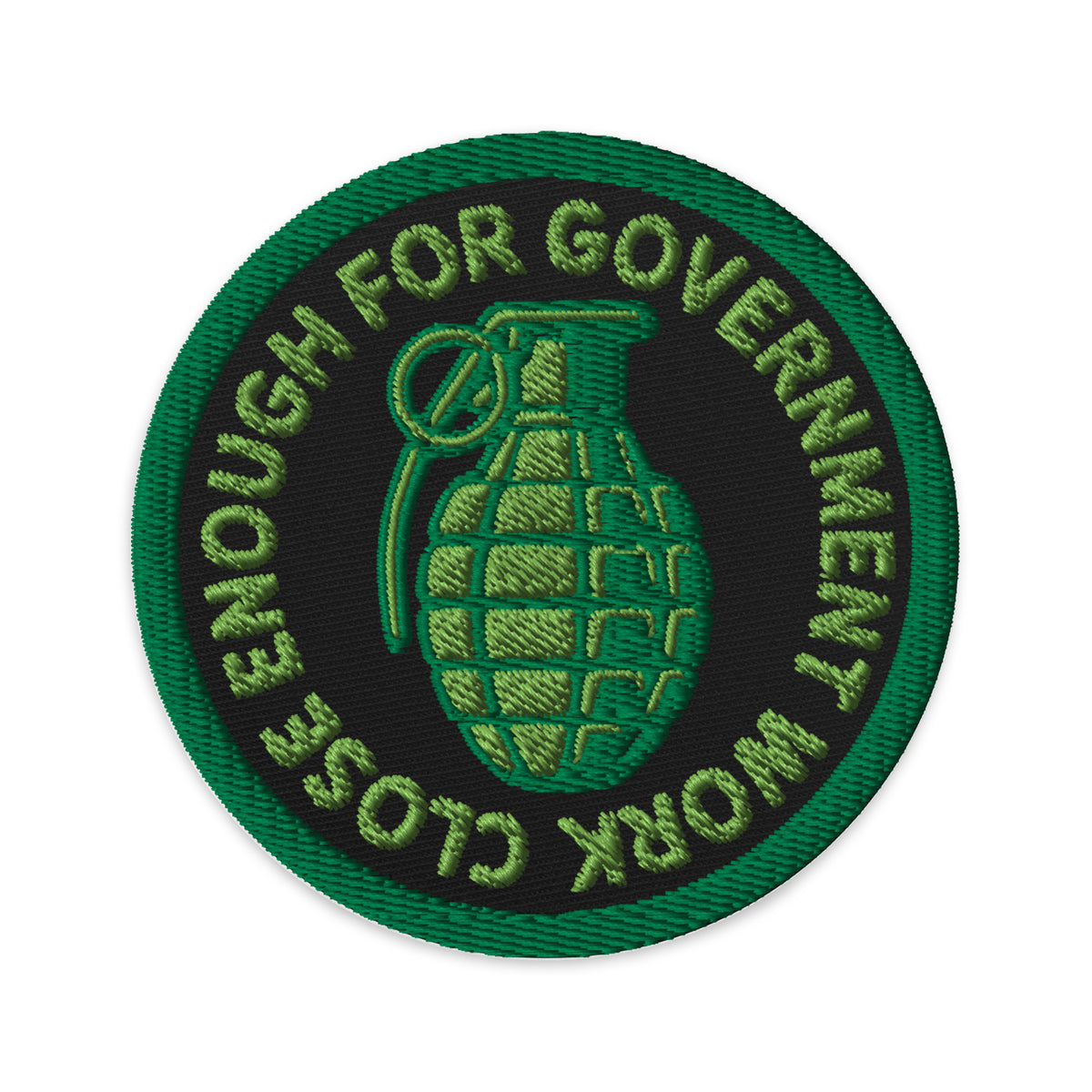 Category: close enough, funny, government, grenade, liberty maniacs, patch