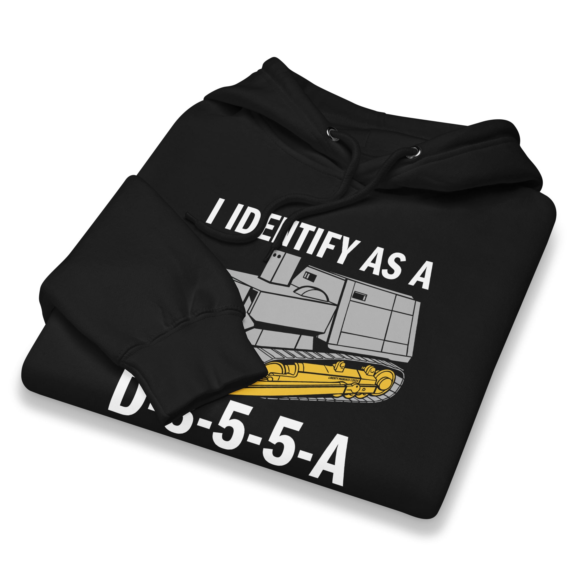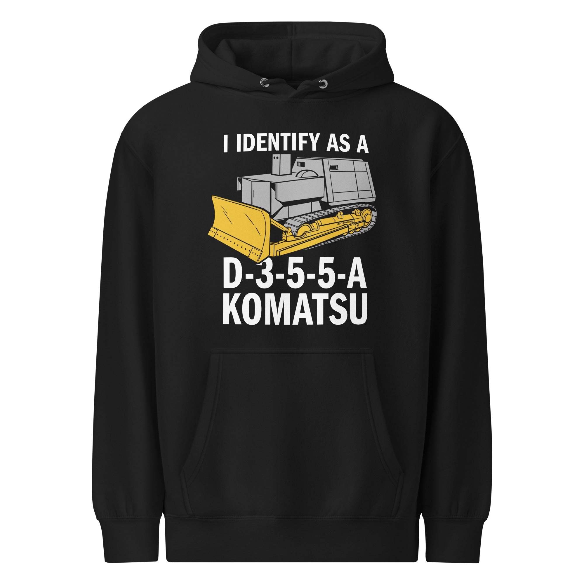 Category: bulldozer, bulldozer parody, diesel pride, funny, heavy equipment meme, hoodie, humor, i identify as, i identify as a, identity politics parody, killdozer merch, komatsu, komatsu d355a, libertarian, libertarian gifts, Liberty Maniacs, marvin heemeyer, sale