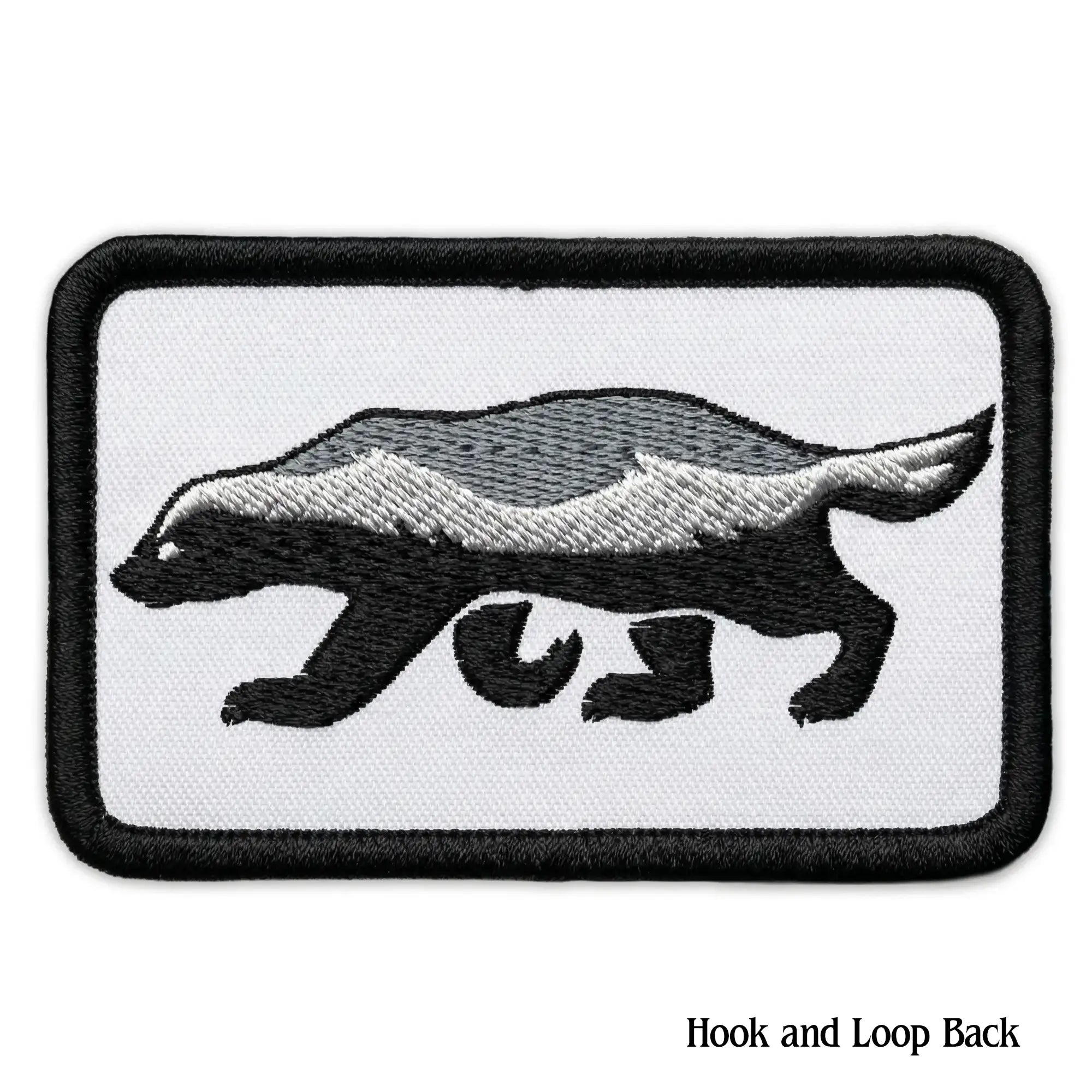 Category: embroidered, honey badger, hook and loop, patch, velcro