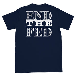 End the Fed Federal Reserve tees by Liberty Maniacs. Front and back printed on premium ringspun cotton tees with double stitching on the neckline and sleeves which add more durability.