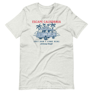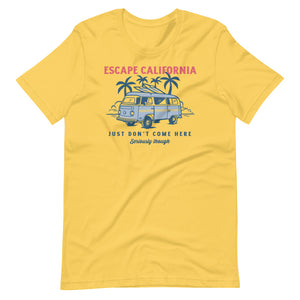 Category: bus, escape California, exodus, funny, funny shirts, go away, humor, ladies, libertarian, liberty maniacs, NIMBY, retro, satire, Summer, surf, unisex, VW