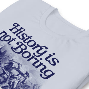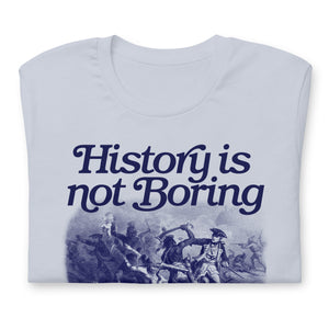 History is not boring. You, however, might be. Printed on our premium combed ringspun cotton tees. The shirts have a very high thread count, making them not only very soft, but also a beautiful canvas to print fine detail.