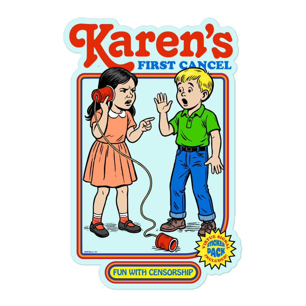 Category: cancel, cancel culture, cans, censorship, children, cups, decal, karen, kids, liberty maniacs, manager, orwell, orwellian, phone, retro, satire, shame, social media, sticker, string
