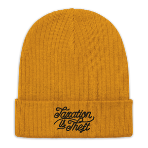 Taxation is Theft embroidered Recycled Cuffed Beanies. Stylish, warm, and fitting for most clothing styles and head sizes.