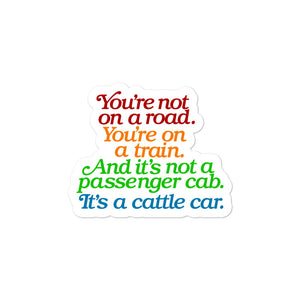 Category: cattle car, covid1984, dan mccall, dark winter, not on a road, quote, sticker, train